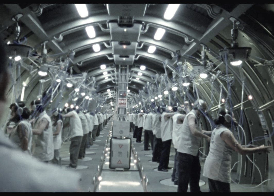 In large warehouses, row upon row of node workers in oxygen masks and translucent contact lenses that allow them to see through the “eyes” of the robots, move in slow, pantomime-like motion manipulating their robot on the other side (see Figures 1 and 2). Nodes in the film are used as a compelling and violent techno-rational solution to the “problem” of migrant workers. Nodes offer a future of “all the work without the worker” (Rivera, 2008, 36:27). Solving the problem of the unpredictable, unreliable, uncertain worker is also the function of codified ethics where the worker/RECE becomes invisible and irrelevant so long as they perform the work and do not violate the code.