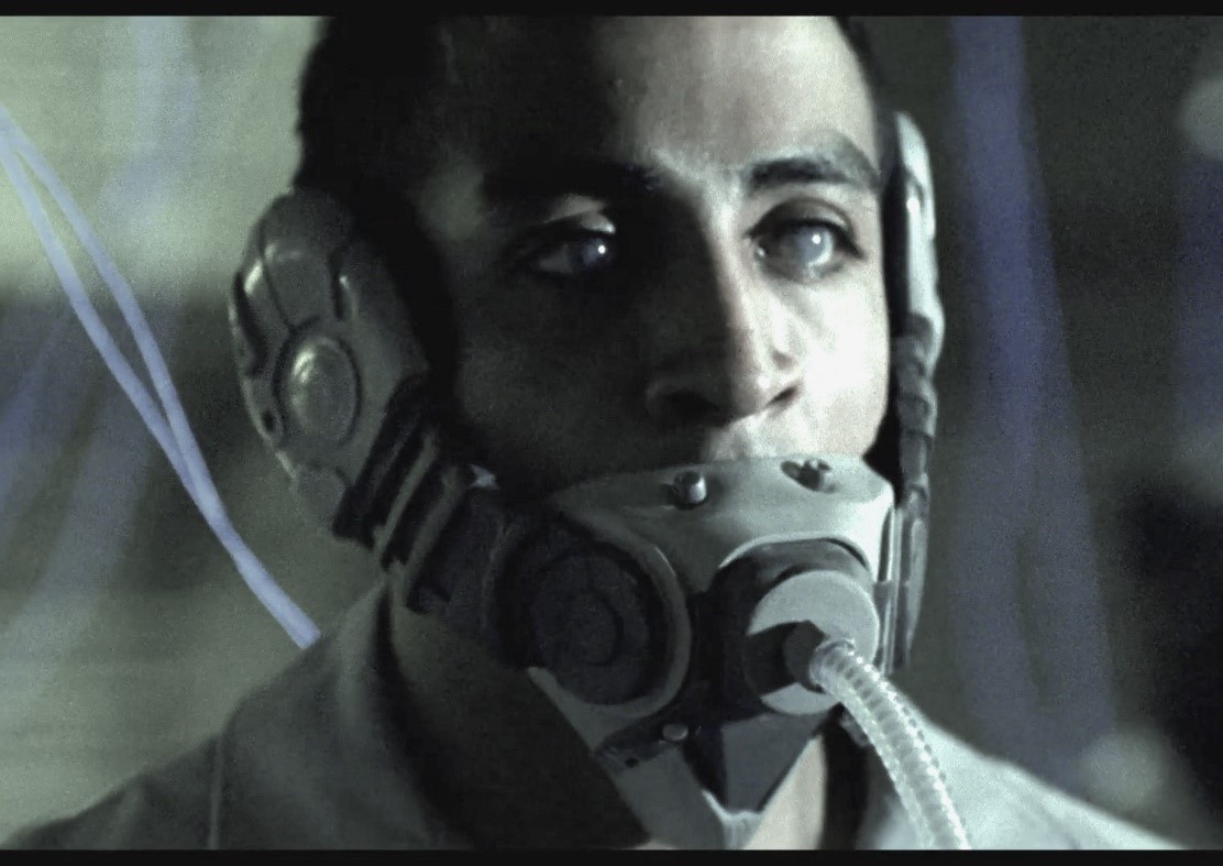 In Sleep Dealer, Rudy Ramirez, the soldier and drone operator who kills Memo’s father, thinking that he is killing an aqua-terrorist, is confronted with the ontological otherness of Memo’s father when he looks into his face (see Figure 7). This moment creates uncertainty for Rudy that he cannot reconcile. While the expectations of his employment are that he carries out orders in destroying the enemy, once he is confronted with the face of the Other as a radical alterity and not as an enemy (even though in the moment of seeing the face of the Other, he does follow orders), he is deeply troubled by his actions which he now experiences as unethical.