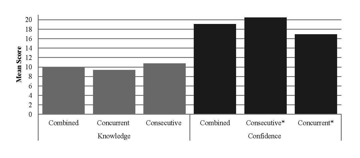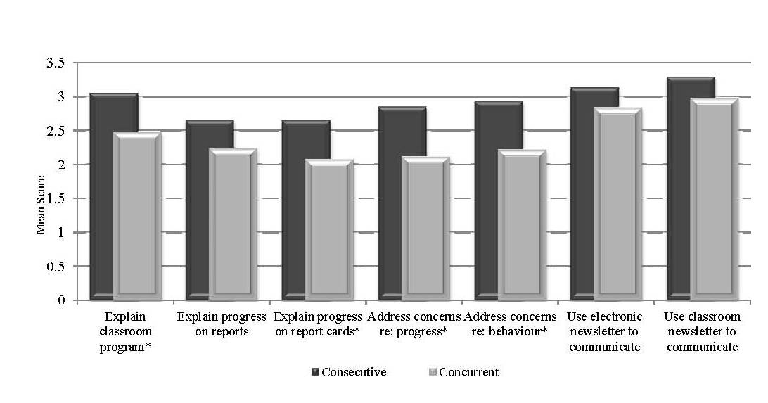 This paper reports on one aspect of a larger study to examine the relationship between preservice teachers’ self-reports of their levels of knowledge and confidence concerning many key areas of professional knowledge and skills. Knowledge and confidence in working with parents were examined using information provided by current and recently graduated concurrent and consecutive bachelor of education students. Results indicate that although knowledge remains consistent over the course of concurrent education, confidence does increase between Year 1 and 3, but then remains constant. Recent graduates do not feel overly knowledgeable or confident in their ability to communicate with parents. However, consecutive students reported significantly more knowledge and confidence compared to concurrent students. Because communicating with parents is a key expectation of professional teachers, this finding is important. The results of this research support the need for additional strategic instruction and practice to develop skills related to communicating with parents in teacher preparation programs.